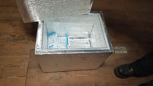 Самодельный холодильник из пенопласта, с аккумуляторами холода.