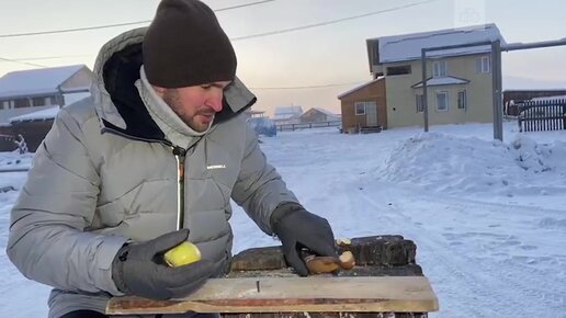 Испытание морозом: забиваем гвозди яблоком