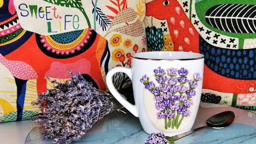 Декор кружки и ложки Крымская Лаванда. Мастер класс с подробными объяснениями.Crimean Lavender.Polymer clay