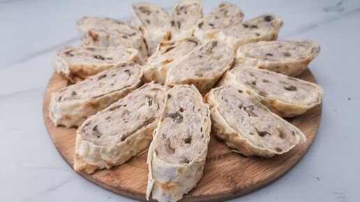 ПП пирог в лаваше с фаршем индейки, сыром и шампиньонами.
