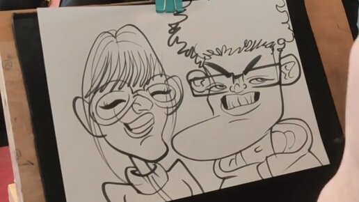Художник рисует издевательский портрет молодой пары