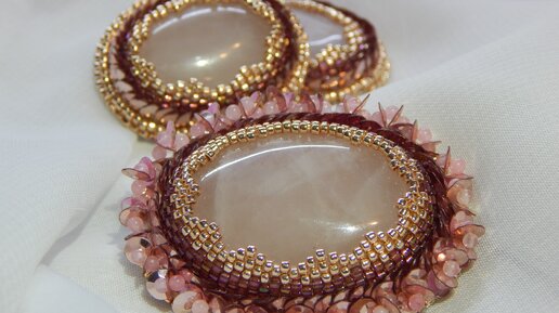 ПОКАЗЫВАЮ ОБЗОР КОМПЛЕКТ УКРАШЕНИЙ ИЗ РОЗОВОГО КВАРЦА. БРОШЬ И КЛИПСЫ СВОИМИ РУКАМИ.