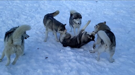 Ну всё, сейчас Хаски доиграется, 1 против 4 - Показываю типичные игры в стае 10 Хаски.