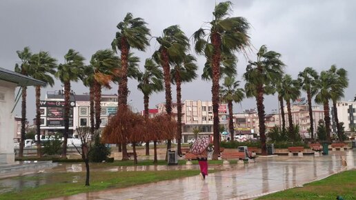 Сильный дождь и ураганный ветер в Анталии