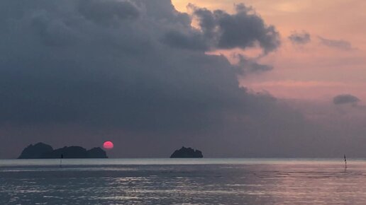 Нереально красивый закат красного солнца и шум прибоя