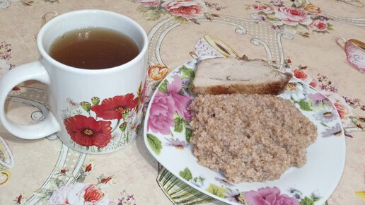 Ужин по деревенски. Пшеничная каша с запеченым мясом и компот.