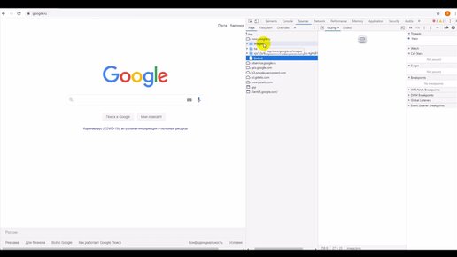 Панель разработчика в Google Chrome.