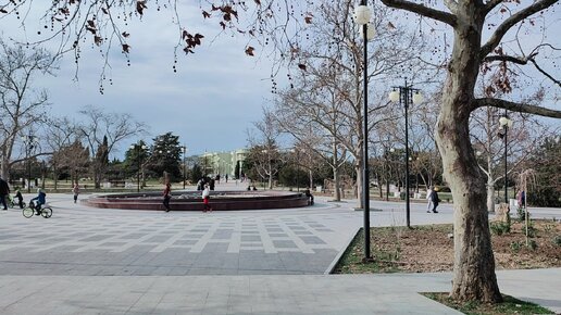 Крым в январе. Вышли в Парк Победы. Сколько людей, какая погода. Смотрим