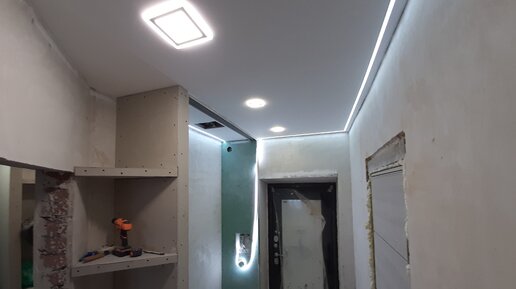 Светодиодная лента LED в потолок, шкаф купе из гипсокартона. Прихожая ч.2