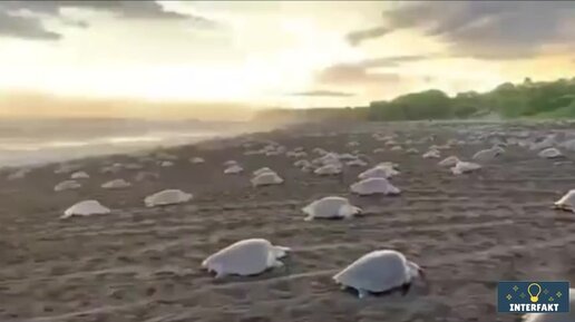 Сотни черепах вышедшие на берег для продолжения рода.