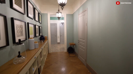 Такого узкого коридора мы еще не видели. Очень много полочек для хранения. Классно придуман и оформлен, ещё и удобно