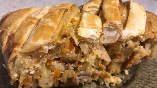 Мое необычное оформление слоеного пирога с капустой и мясом.