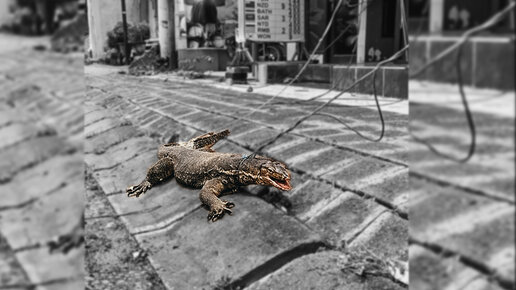 Варан посреди улицы ведущей к пляжу – местные пытаются его поймать