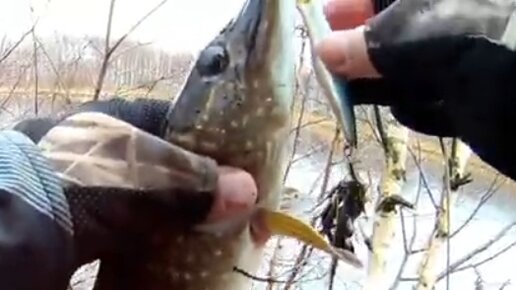 Весенняя щука на Tsuribito Dead Minnow 90F и Pontoon 21 Crackjack 58 SP-SR+ливень и снег!
