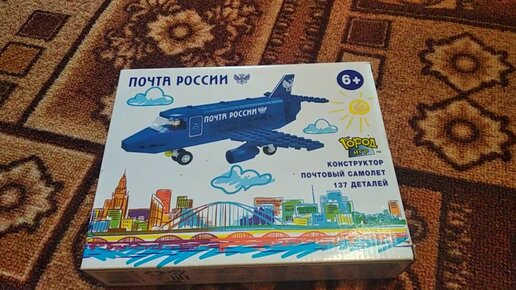 Распаковываем и собираем с племянником конструктор "Самолёт Почты России". Ребёнок доволен игрушкой