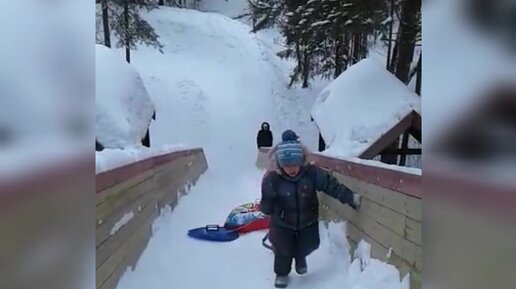 Катание с горки - забава для тех, кто не боится высоты. Красивейший сосновый бор в пригороде Омска