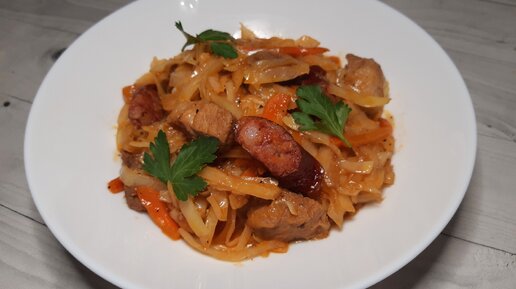 Капуста с мясом и копчёностями 😋 Видео-рецепт 📹