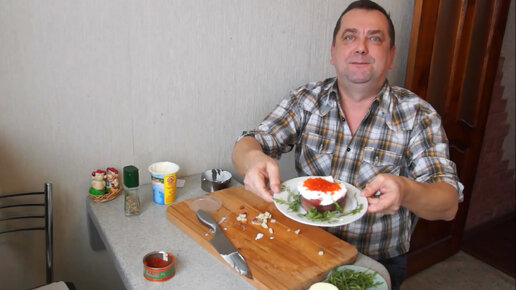 Делаем салат из слабосолёной сельди, сельдерея и яблока со сметаной и красной икрой