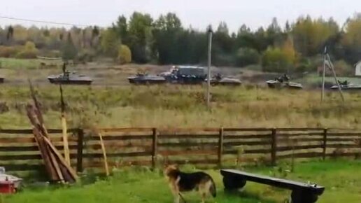 Колонна военной техники в деревне Волженец перед форсированием реки Великой 11.01.2020