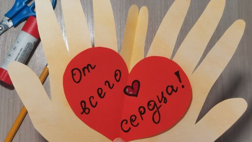 Открытка своими руками на 14 февраля. Сердце на ладонях