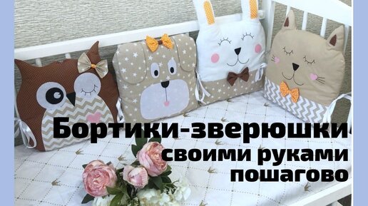 Бортики зверюшки своими руками. Выкройка под видео. Подушки зверюшки, пошагово. Мастер класс.