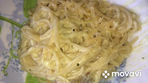 Макароны в сливочном соусе карбонара.