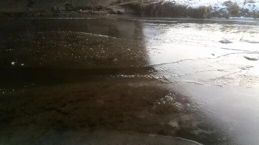 Вода теплее воздуха. От реки идёт пар.