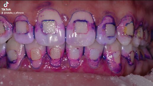 Снятие материала с зубов после снятия брекетов и проведение проф гигиены.