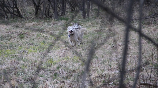 Хаски и маламуты отлично ходят без поводка рядом...