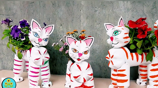 Показываю, как я сделала горшок в виде кошки из 1.5-литровых бутылок