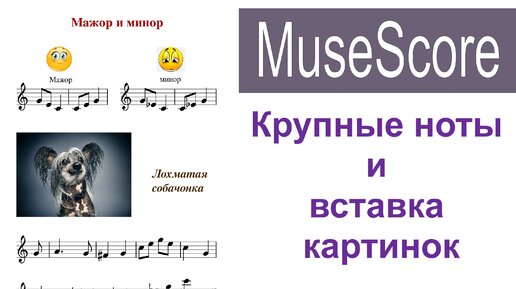 Как сделать крупные ноты в программе MuseScore, как вставить картинки и всё расположить на страничке