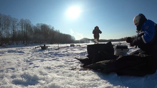 Зимняя рыбалка на ленка. На рыбалку в -36 градусов. Тайга. Мороз.
