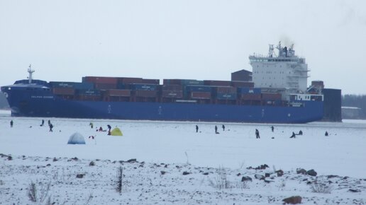 Сотни рыбаков на льду Финского Залива, рядом с корабельным ходом. Каждый день, пока есть лед.