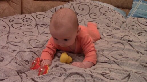 Настеньке 4 месяца, ребенок берет в руки игрушки, ползет, топает ножками