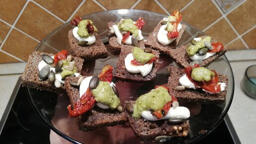 Вкусная закуска за 5 мин. Бутерброд с вялеными помидорами.