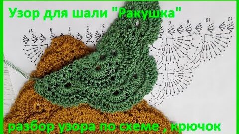 Обьемный узор для ШАЛИ "Ракушка" Вязание КРЮЧКОМ по схеме ( шаль № 198)