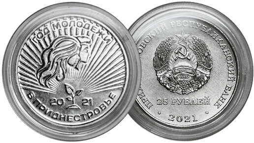 Новая монета ПМР 25 рублей 2021 - Год молодёжи в Приднестровье.