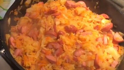 Тушеная капуста с сосисками за 30 минут классический рецепт,очень вкусно