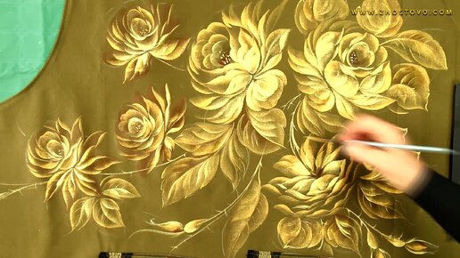 Роспись фартука акриловыми красками на 8 марта, Жостовская роспись