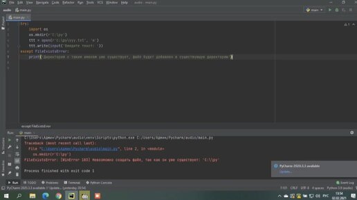Создаём текстовый файл в заданной директории | Python для начинающих