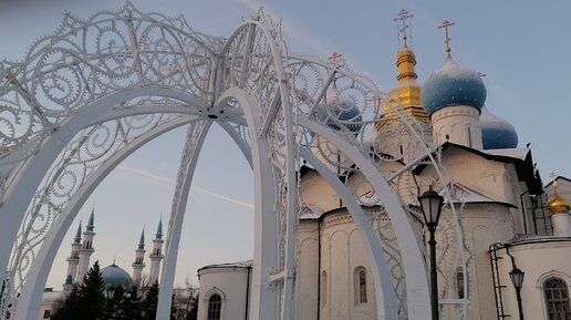 Казанский Кремль зимой, вид на Волгу и восход солнца🌞