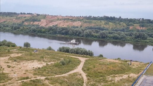Посмотрел в окно и увидел корабль. Дом около реки.