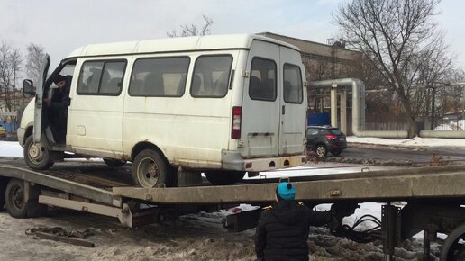 Погрузка аварийного автомобиля с автовоза на эвакуатор.