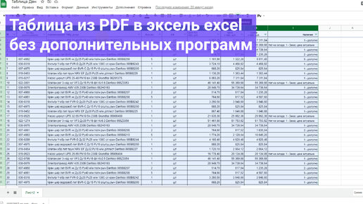 Таблица из PDF в эксель excel без дополнительных программ и приложений конвертация