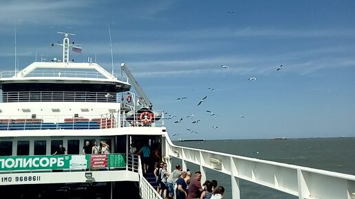 Чайки атакуют людей на пароме, в надежде поживиться вкусненьким.