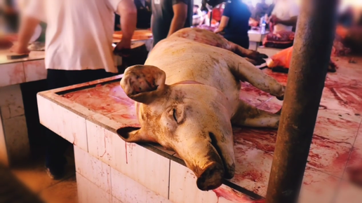 Мясной рынок. Правильно разделываем свинную тушу, из отборных частей варим имбирный-суп