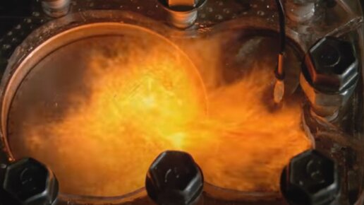 Работа ДВС под стеклом. Воспламенение смеси. 15- кратное замедление. 4000 кадров в секунду