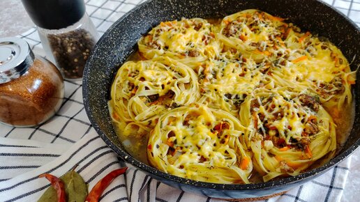 Гнёзда с фаршем и сыром на сковороде. Пробовали?