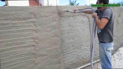 Китайцы придумали способ быстро распылить цементную штукатурку (профи оценят)