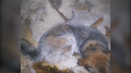 В Якутии вмерзшего в лед пса вызволили при помощи лома